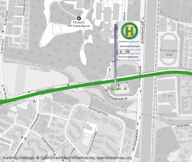 Die Idee, eine Haltestelle zwischen den vorgesehenen StUB-Halts „Schulzentrum West“ und „Odenwaldallee“ einzuplanen, entstand bereits im Rahmen des Raumordnungsverfahrens. Hier gab uns die Höhere Landesplanungsbehörde den Hinweis, zu prüfen, ob diese Haltestelle nicht zusätzlich sinnvoll sei. Auch bei unseren Veranstaltungen wurde seitens der Bürgerinnen und Bürger immer wieder der Wunsch nach einer Haltestelle in diesem Bereich geäußert, um das Klinikum am Europakanal und die Wohngebiete am Würzburger Ring mit der StUB besser zu erreichen. Nach Prüfung lautet unser Ergebnis: Ja, es ist sinnvoll. Der UVPA hat uns nun offiziell den Auftrag erteilt, die Haltestelle „Am Europakanal“ umzusetzen.