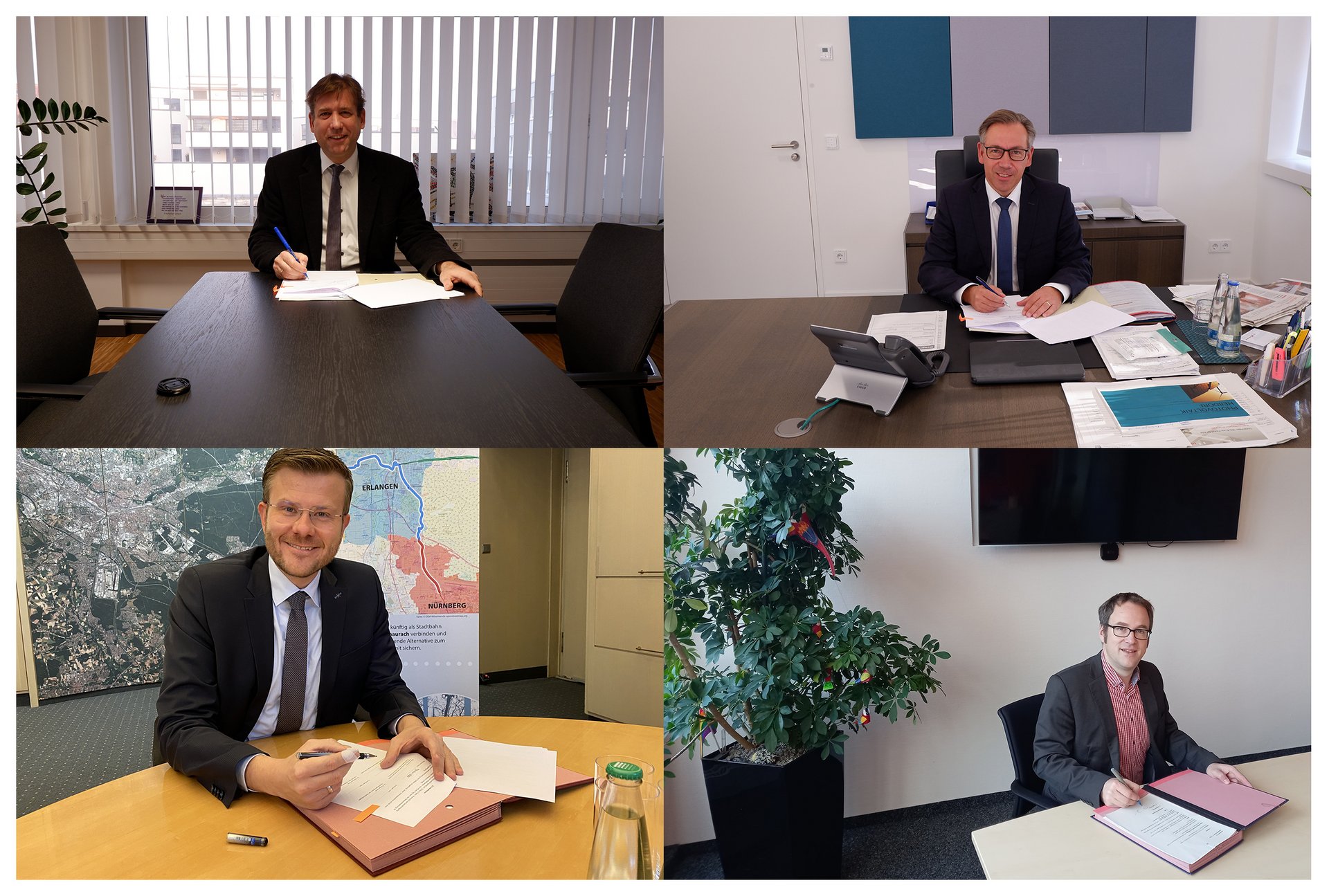Für eine vertiefte Planung des Ostastes haben wir mit den Landkreisen Erlangen-Höchstadt und Forchheim sowie der Stadt Erlangen Ende Juli eine gemeinsame Zweckvereinbarung beschlossen. Diese haben nun alle Beteiligten unterzeichnet und damit den offiziellen Beginn für die Planung des Ostastes eingeleitet.