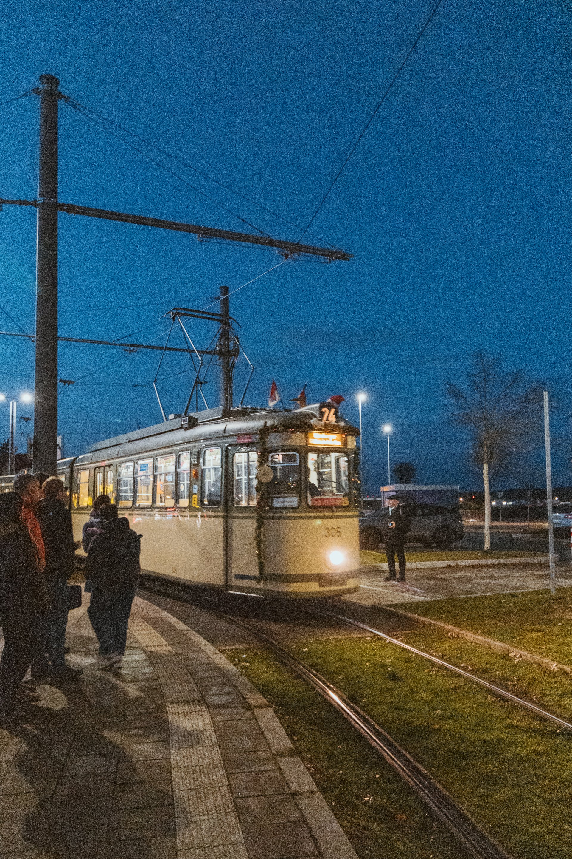 Um 17 Uhr leitete das Bimmeln der Historischen Straßenbahn in Nürnberg “Am Wegfeld” unser 16. Dialogforum zur Stadt-Umland-Bahn ein. Gemeinsam mit den Interessierten begaben wir uns auf eine Zeitreise in die Vergangenheit der Nürnberger Straßenbahngeschichte. Bei Kinderpunsch und Lebkuchen erfuhren die Fahrgäste von den ersten Wurzeln des heutigen Liniennetzes der Nürnberger Straßenbahn. 40 Minuten später erreichten wir das Historische Straßenbahndepot St. Peter, wo wir den Blick von der Vergangenheit in die Zukunft richteten. In den nächsten, rund 90 Minuten, betrachteten wir den aktuellen Planungsstand des L-Netzes und sprachen intensiv über den Nürnberger Streckenabschnitt.