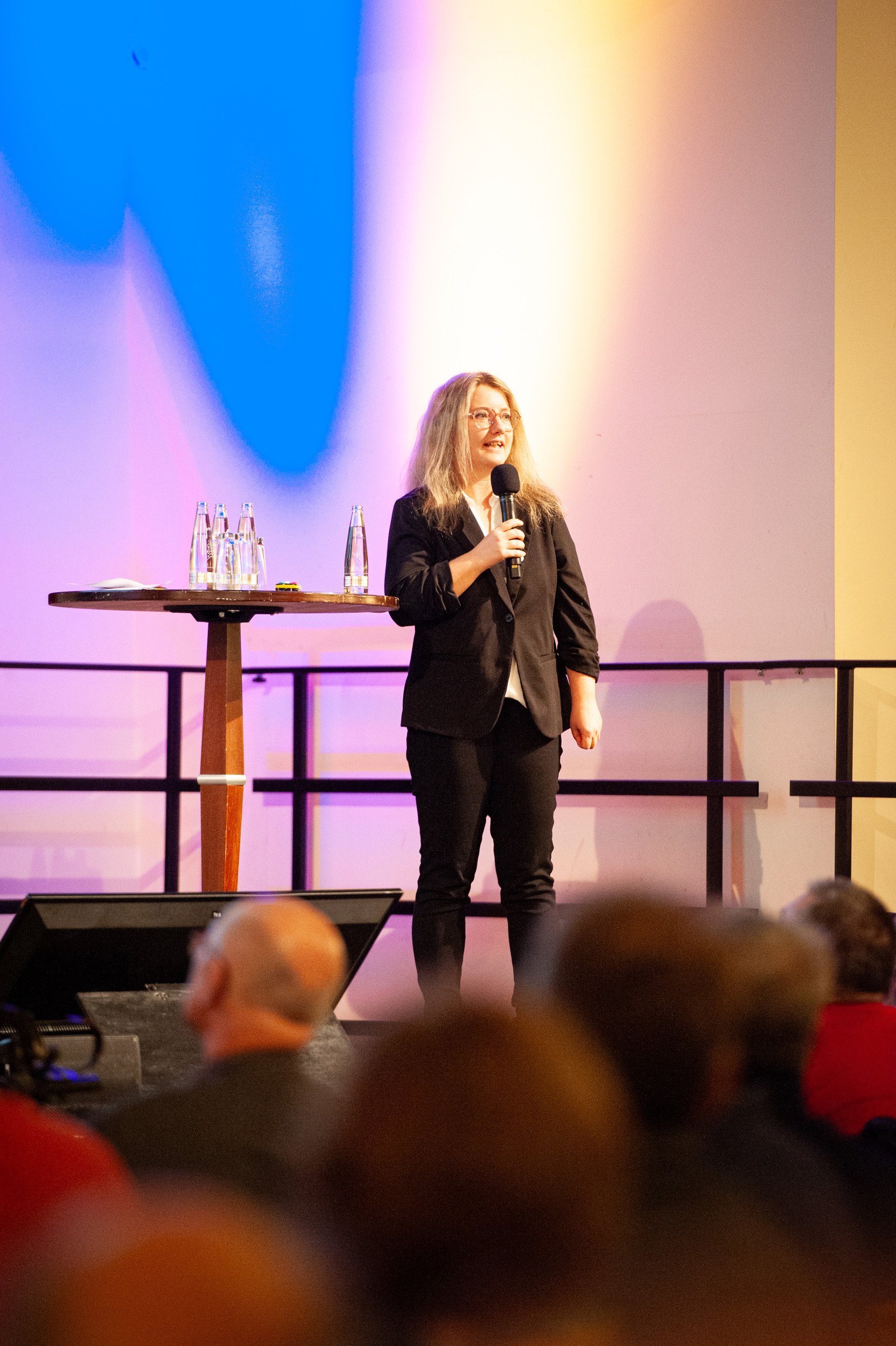 Für den Erlanger Abschnitt fokussierte sich die Präsentation auf die Optimierung der Anbindung der Weinstraße/Äußere Nürnberger Straße, sowie auf die Wendeschleifen in der Freyeslebenstraße und in der Regnitzstadt. Zur Ergänzung der Thematik im Erlanger Süden durften wir Dr. Daniela Ullmann auf der Bühne begrüßen. Stellvertretend für das Amt für Stadtplanung und Mobilität der Stadt Erlangen ging sie ausführlich auf das Verkehrskonzept für den Erlanger Süden und die sich dort mit der StUB verändernden Fahrtbeziehungen ein.