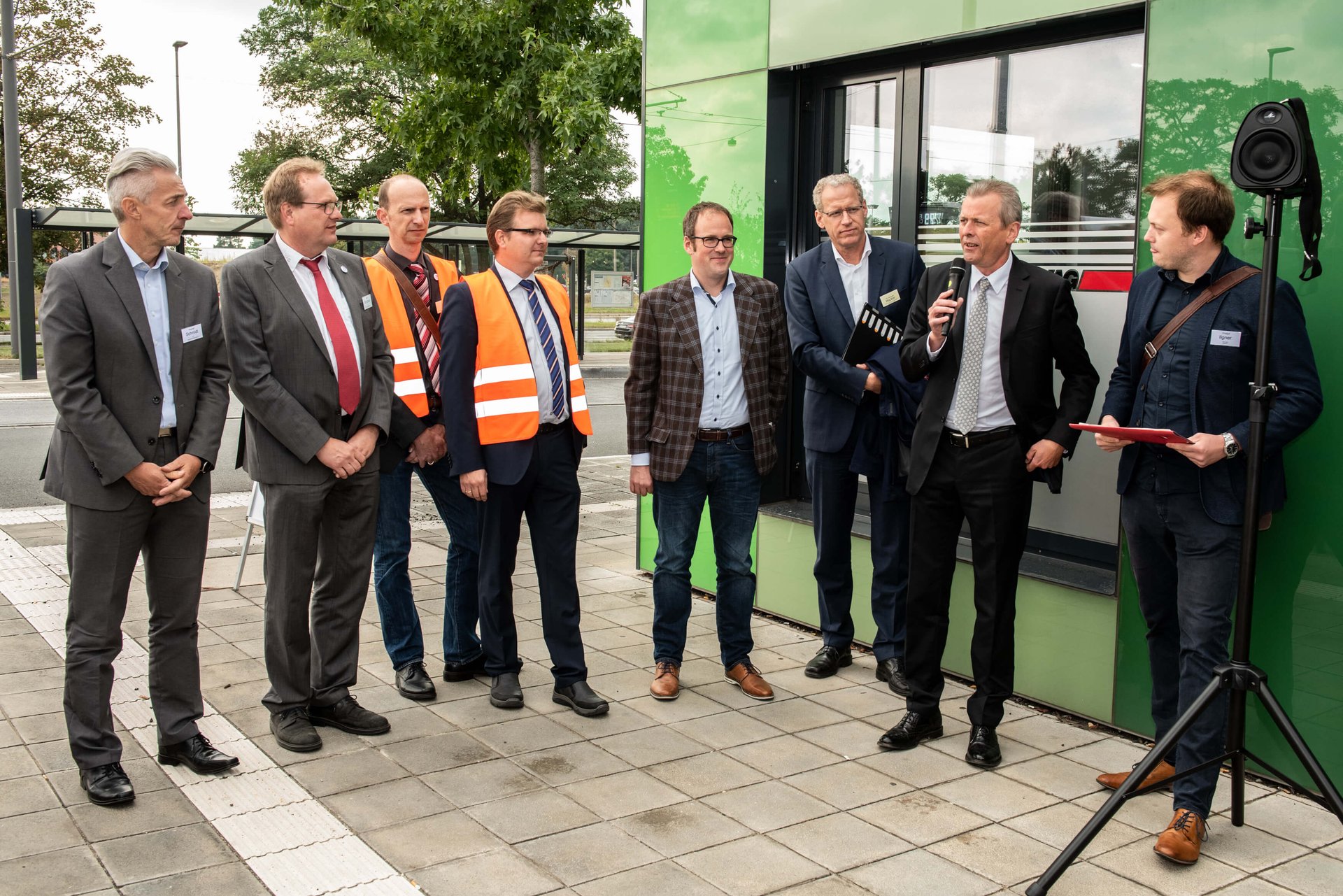 Am Montagabend, 9. September 2019, haben wir zu einem mobilen Dialogforum nach Nürnberg geladen. Die rund 70 Teilnehmenden fuhren mit einer angemieteten Straßenbahn durchs Stadtgebiet und besichtigten gemeinsam mit Vertretern der VAG unterschiedliche Haltestellenanlagen.