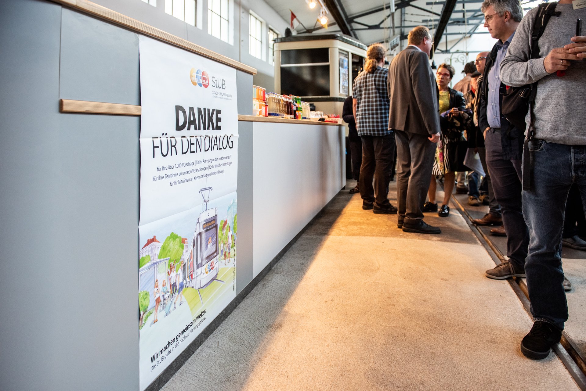 Die Sonderfahrt endete am historischen Straßenbahndepot St. Peter. Bei einer Führung durch die Ausstellung erfuhren die Teilnehmenden mehr über die Entwicklung der Straßenbahn – von der ersten Pferdestraßenbahn bis hin zum modernen Niederflurwagen. Zudem berichtete Daniel Große-Verspohl, Geschäftsleiter des ZV StUB, in einem Vortrag über den aktuellen Sachstand der Planungen: „Derzeit läuft zwar das Raumordnungsverfahren, wir sind aber nicht untätig. So untersuchen wir bereits mögliche Optimierungspotenziale der Vorzugstrasse insbesondere mit Blick auf den Umwelt- und Naturschutz. Ebenso werden wir die Rückmeldungen zum Raumordnungsverfahren, die uns seitens der Regierung von Mittelfranken weitergeleitet werden, genau prüfen. Ende 2019 rechnen wir mit dem Abschluss des Raumordnungsverfahrens. In den dann folgenden Schritten der Planung werden wir die Bürgerinnen und Bürger wieder aktiv einbinden.“