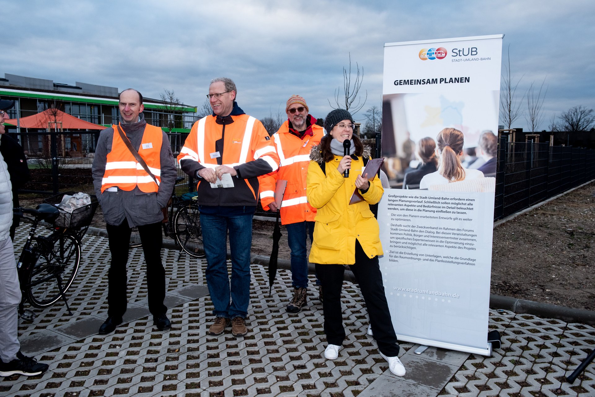 Bei der Begehung hatten die Bürgerinnen und Bürger vor allem Fragen zur Verknüpfung der Stadt-Umland-Bahn mit den Buslinien. Auch merkten sie an, wie wichtig Fahrradabstellmöglichkeiten und Park & Ride-Anlagen in unmittelbarer Nähe der Haltestellen seien. „Die Stadt-Umland-Bahn wird nicht isoliert geplant. Wir betrachten den gesamten Verkehr. So wird mit der StUB auch das Busnetz neu konzipiert. Zudem wird es, soweit möglich, an jeder Haltestelle Fahrradstellplätze geben. Entlang der Strecke sind des Weiteren Park & Ride-Anlagen vorgesehen. Wir entwickeln ein Gesamtkonzept, um einen schnellen und einfachen Umstieg vom Fahrrad, Bus oder Auto auf die Straßenbahn zu ermöglichen“, betonte Dr. German Hacker, Verbandsvorsitzender des ZV StUB und Erster Bürgermeister der Stadt Herzogenaurach.