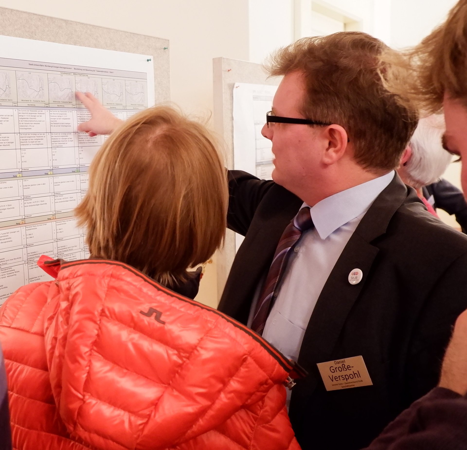 Neben der Präsentation des aktuellen Sachstands lag der Schwerpunkt des Lokalforums im Dialog. Die rund 150 Besucherinnen und Besucher konnten sich im Rahmen eines Infomarkts mit den Ingenieurinnen und Ingenieuren sowie Gutachterinnen und Gutachter über die einzelnen Bewertungsergebnisse austauschen. Ein Stand widmete sich insbesondere den Natur- und Artenschutzbelangen. An diesem beantworteten die Planerinnen und Planer des beauftragten Umweltbüros ANUVA die Fragen der Interessierten. Vor allem eine Variante sorgte für viel Gesprächsstoff, auch in der abschließenden Diskussionsrunde. Die Variante, die über die Pfarrstraße zum Dechsendorfer Damm führt, ist unter Berücksichtigung des heutigen Verkehrs baulich nicht umsetzbar (Variante 1.1). Es würde aufgrund der mangelnden Breite der Pfarrstraße zu wenig Platz für die erforderlichen Gehwege bleiben. „Wir sollten hier noch einmal ein Szenario entwickeln und klären, was wir tun müssten, damit die StUB durch die Pfarrstraße verlaufen könnte. Es geht dabei auch darum, die mit dieser Trassenführung einhergehenden Bauten zur Querung der Bahnlinie und der Autobahn einzubeziehen“, äußerte Dr. Florian Janik, Oberbürgermeister der Stadt Erlangen, im Lokalforum.