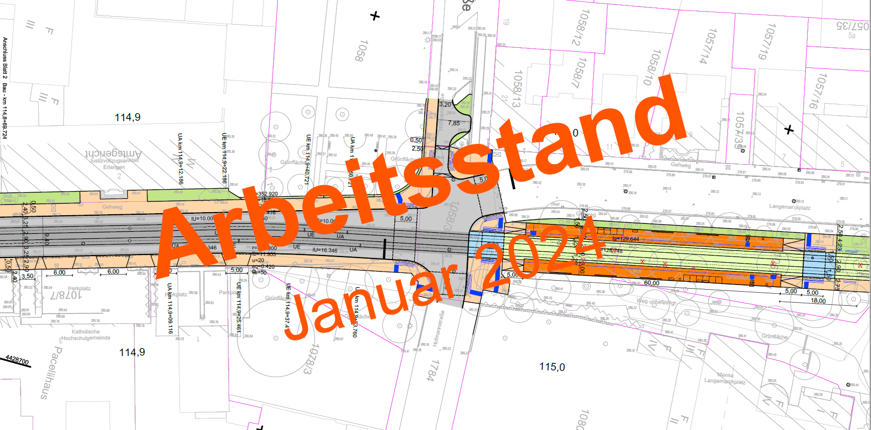Ausschnitte aus der aktuellen Planung: Streckenabschnitt Sieboldstraße bis Langemarckplatz (Stand: Januar 2024)