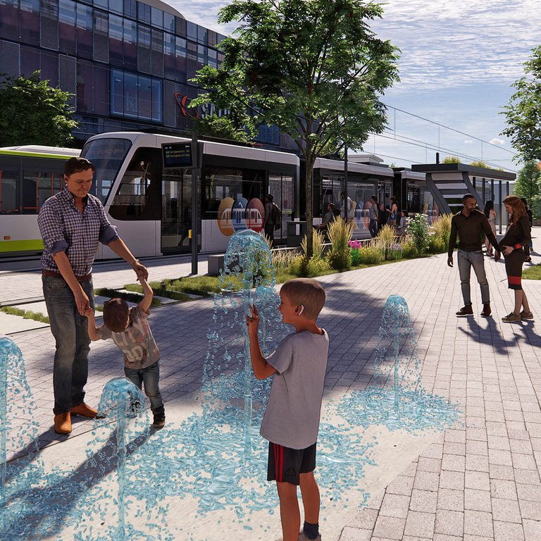 - Neugestaltung des Arcaden-Vorplatzes mit StUB für mehr Platz und mehr Aufenthaltsqualität