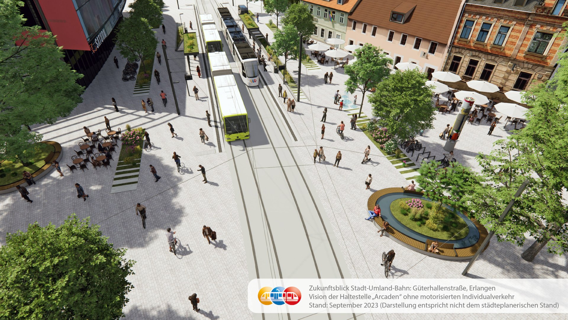 Die Entscheidung über die künftige Verkehrswegebeziehung im Bereich der Arcaden wurde in den politischen Stadtgremien getroffen. Der Erlanger Stadtrat hat uns als Zweckverband Stadt-Umland-Bahn in seiner Sitzung vom 26. Oktober 2023 empfohlen, mit der sogenannten Vorzugsvariante weiter zu planen. Diese bildet die Grundlage für unsere weiteren Planungen.