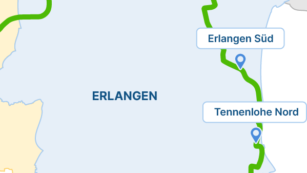 - Direkte, schnelle und umsteigefreie Verbindung ins Erlanger und Nürnberger Zentrum