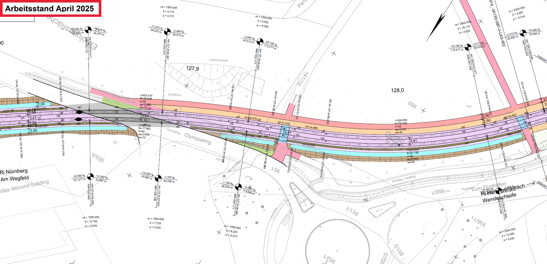 Die StUB auf Höhe des Olympiarings (Aktueller Planungsstand April 2025)
