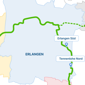 - Gute und schnelle Anbindung des FAU-Südgeländes und des Siemens-Campus sowie von Tennenlohe mit Nürnberg, Herzogenaurach und des Erlanger Stadtzentrums